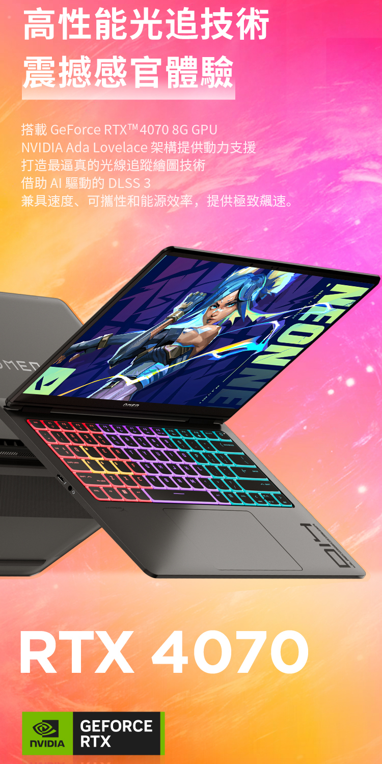 繪圖晶片:獨立顯卡 Nvidia GeForce RTX 4070 8GB / Intel® Arc™ Graphics