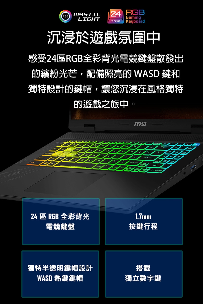 ✦ 24區RGB全彩背光電競鍵盤