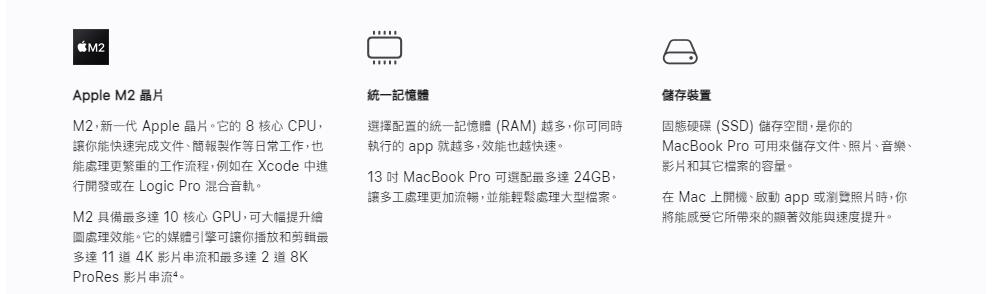 • M2 晶片具備新一代 CPU、GPU 與新世代的機器學習效能表現