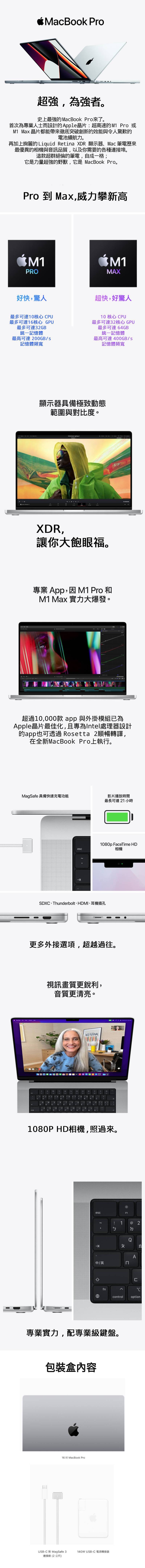 • Apple M1 PRO 晶片配備 10 核心 CPU、16 核心 GPU