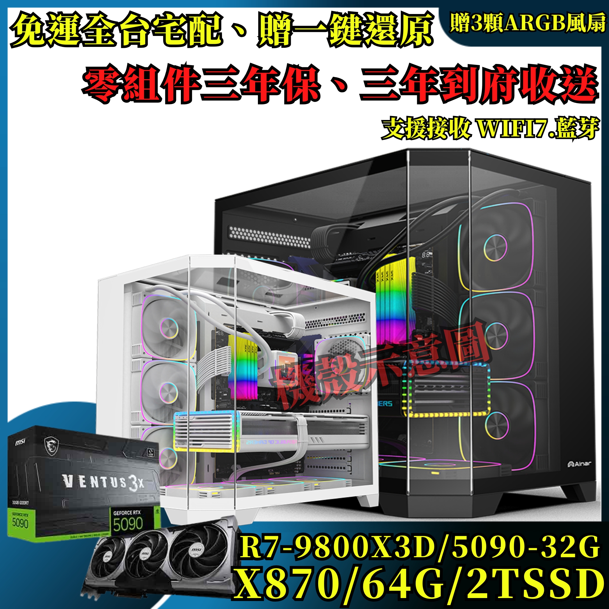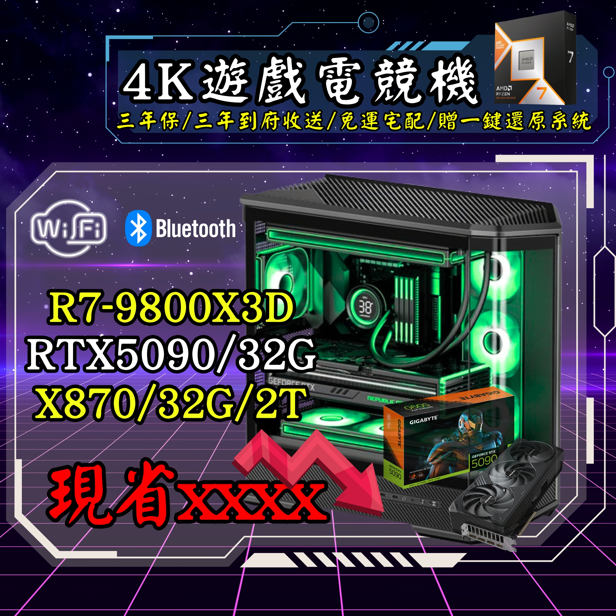 【R7-9800X3D】4K遊戲電競機(R7-9800X3D/X870 /32G/2T/RTX5090)