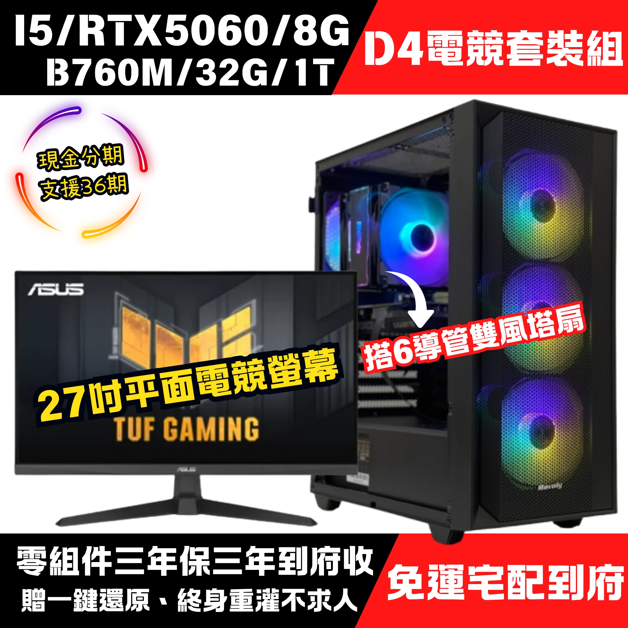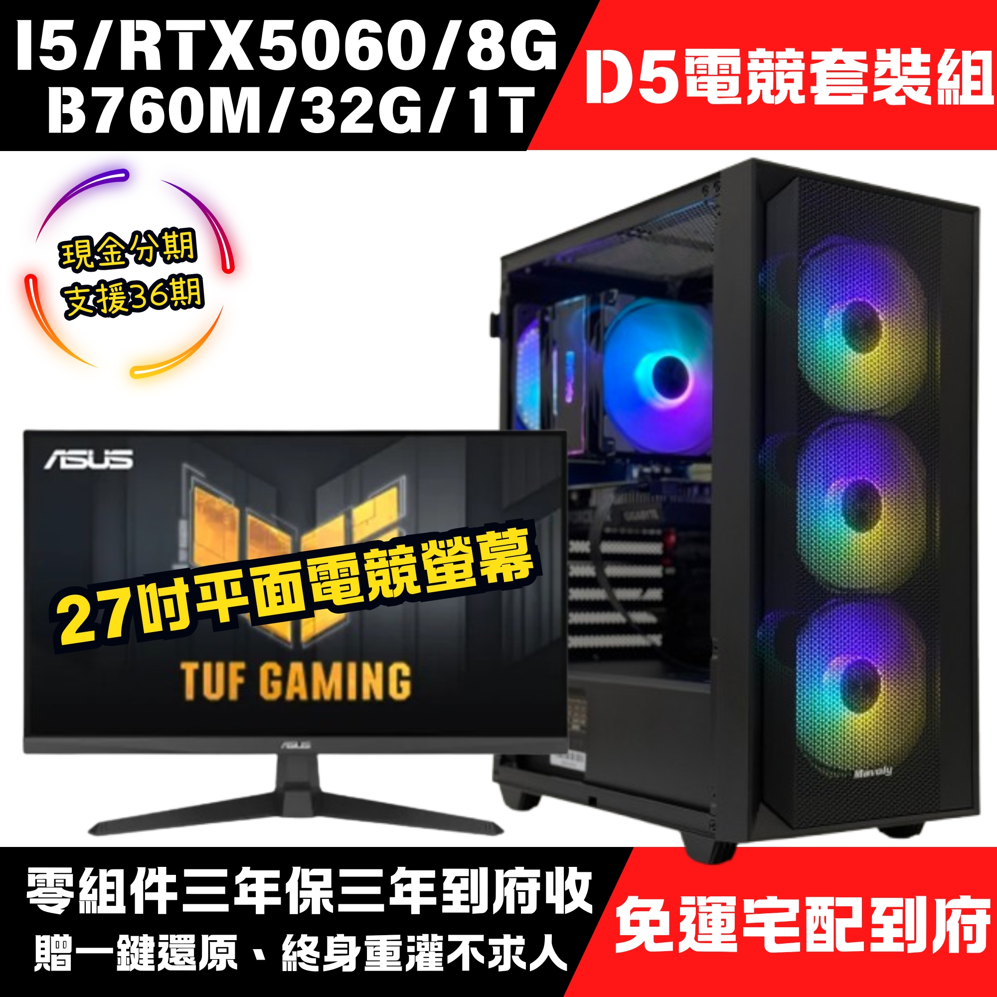🚀【12代D5】6核電競機套裝組PLUS (12400F/B760M /32G/1T/RTX5060TI)
